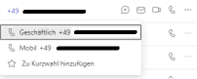 OK, ein Rechtsklick zeigt alle im Kontakt vorhandenen Nummern an, bereit zum Anruf. Schön ist das nicht, aber funktionell, wie so vieles in Teams. Zumindest bis zum nächsten automatischen Update der App.