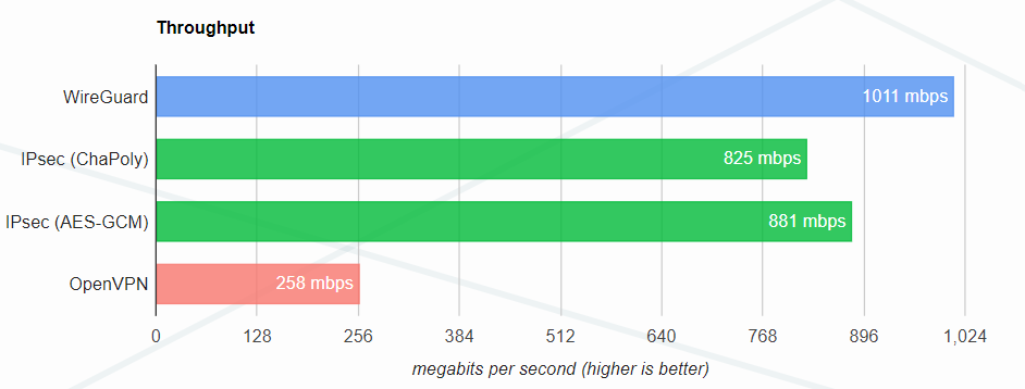 Abbildung 4 – Vergleich des Datendurchsatzes unterschiedlicher VPN-Lösungen [2], Quelle: WireGuard.com