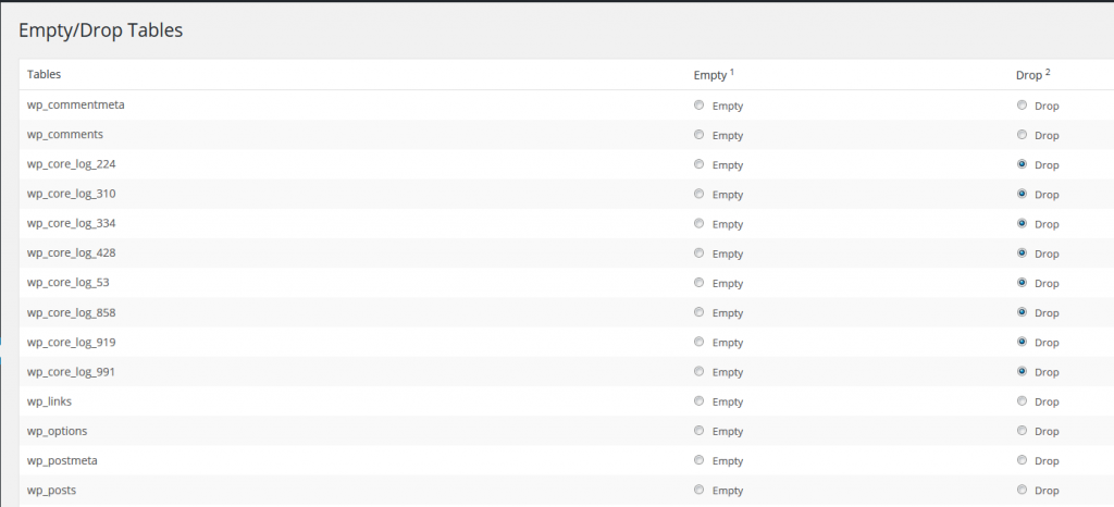 Abbildung 4: Löschen unerwünschter Tabellen