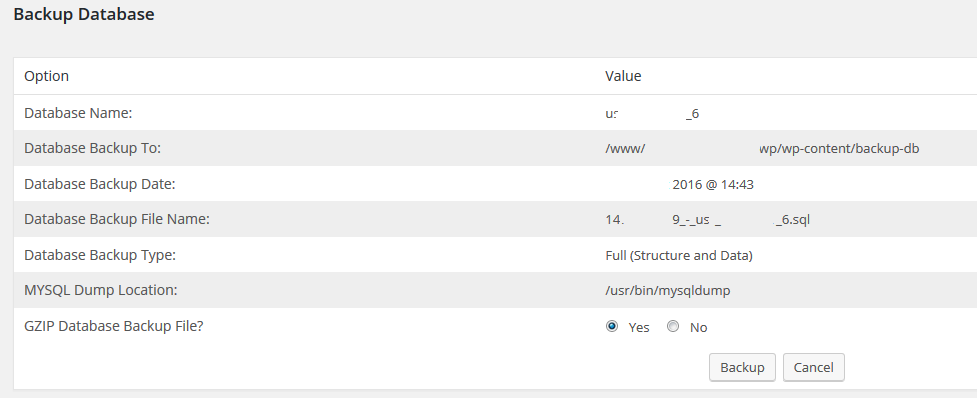 Über das WordPress-Plugin BackWPup konnte auch ohne den sonst notwendigen Datenbankzugriff ein Backup der Datenbank erfolgen und damit eine weitergehende Analyse der Datenbank stattfinden.